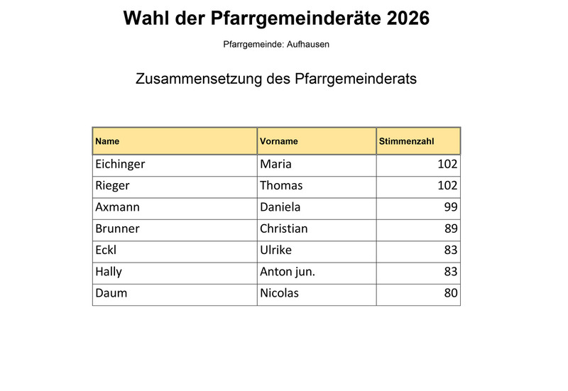 8.00 Frühmesse in Aufhausen für Leb. und Verst. der Familien Forster u. Raab