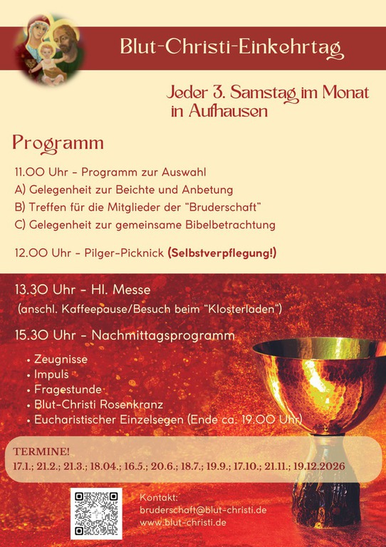 18:30 Heilige Messe zu Ehren des Kostbaren Blutes, mit Kommunion unter beiderlei Gestalten,